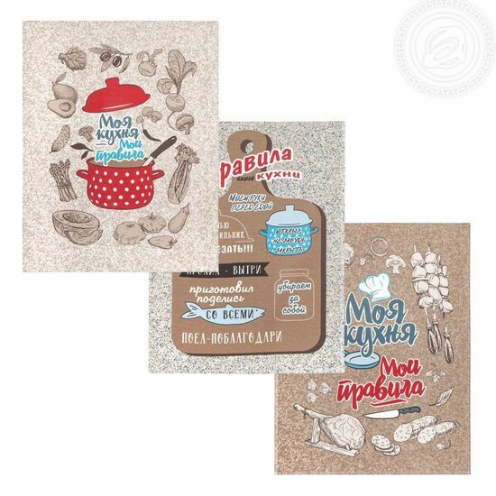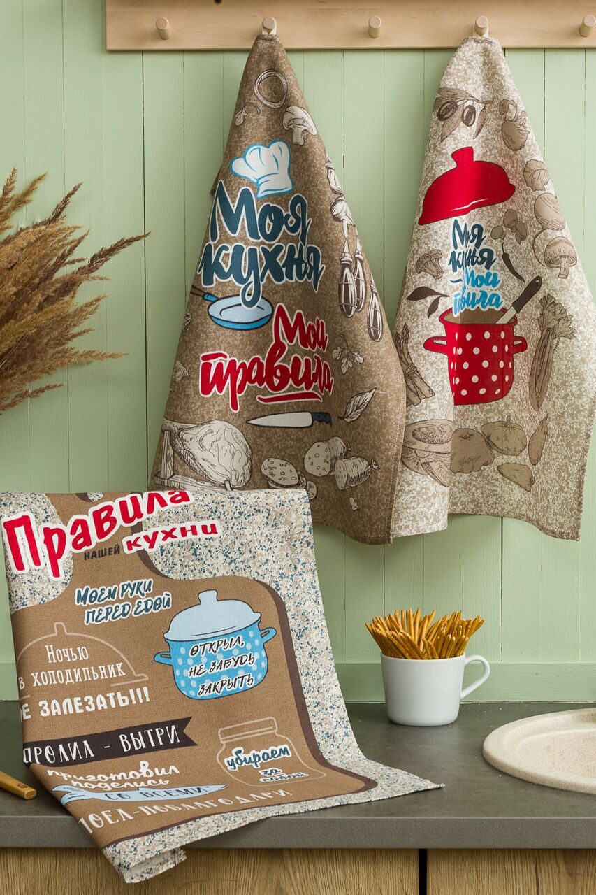 К-т полотенец "Правила кухни" 50*60 см. - 3 шт. рогожка хлопок 100%