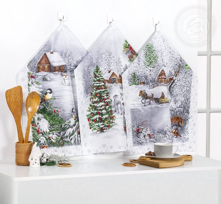 К-т полотенец "Студеная пора" 50*60 см. - 3 шт. рогожка хлопок 100%
