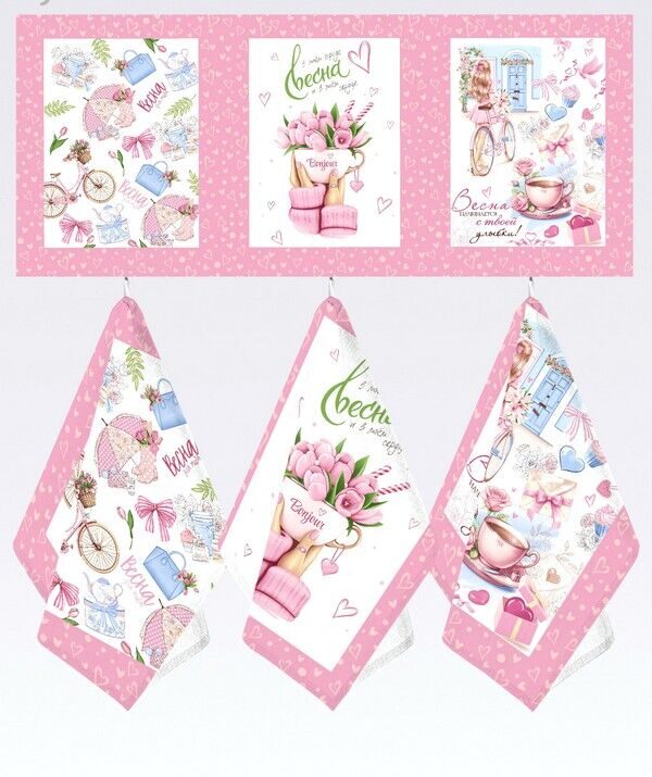 К-т полотенец "Весна" 50*60 см. - 3 шт. вафля хлопок 100%