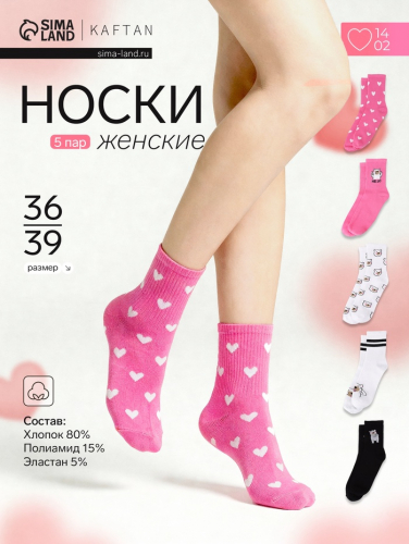 Носки женские KAFTAN «Лучший подарок», набор 5 пар, размер 36-39 (23-25 см)