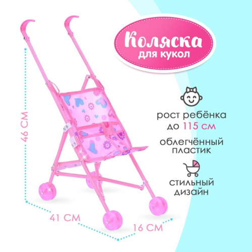 * Размер коляски: 41 × 16 × 44 см. Подходит для детей ростом до 115 см.