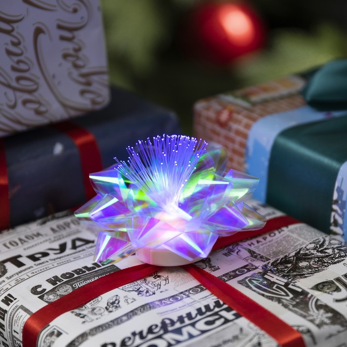 Светодиодная игрушка «Бант-звезда» 10 см, от батареек LR44×3, свечение мульти, перламутровая