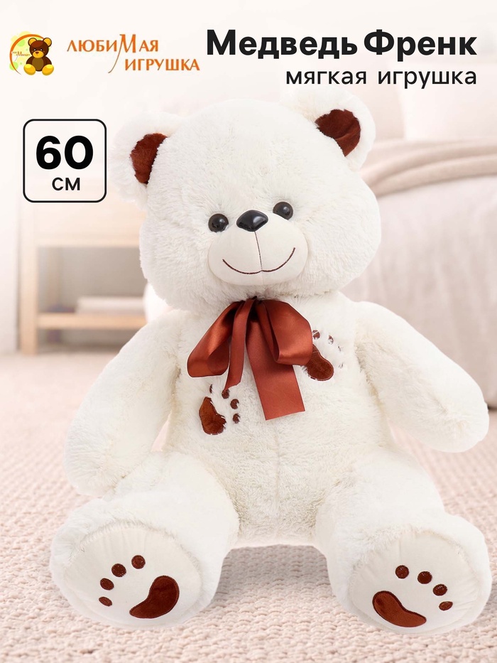 Мягкая игрушка «Медведь Френк» — классический плюшевый медвежонок в светлом оттенке с аккуратными контрастными деталями. Лаконичный дизайн делает его универсальным подарком и уютным элементом интерьера.