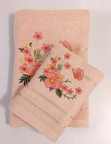 Махровое полотенце "8 МАРТА-РОЗЫ"- ЗЕЛЕНЫЙ 70*140 см. хлопок 100%