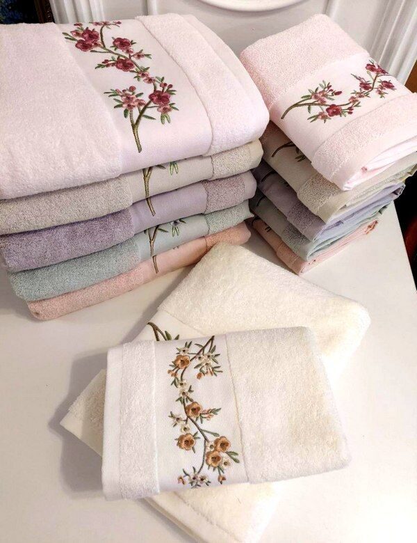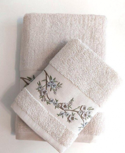 Махровое полотенце "Сакура"-МОЛОЧНЫЙ 50*90 см. хлопок 100%