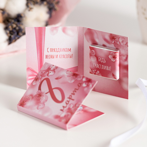 Мини-открытка "8 марта (светло-розовая с цветами)"