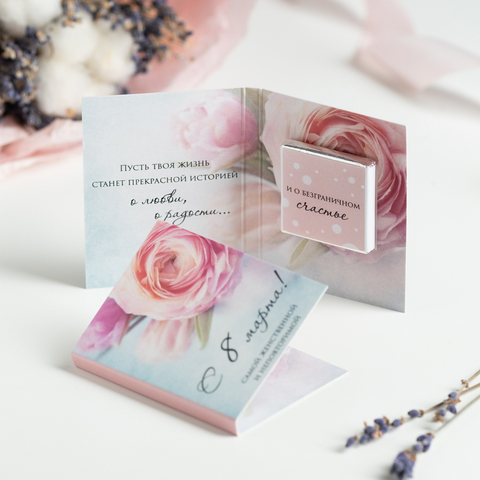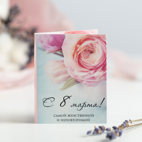 Мини-открытка "С 8 марта самой женственной и неповторимой"