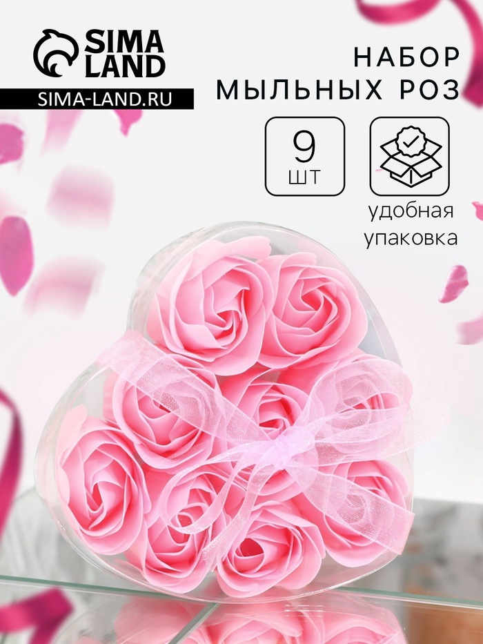 Мыльные розочки, розовые, набор 9 шт., в коробке