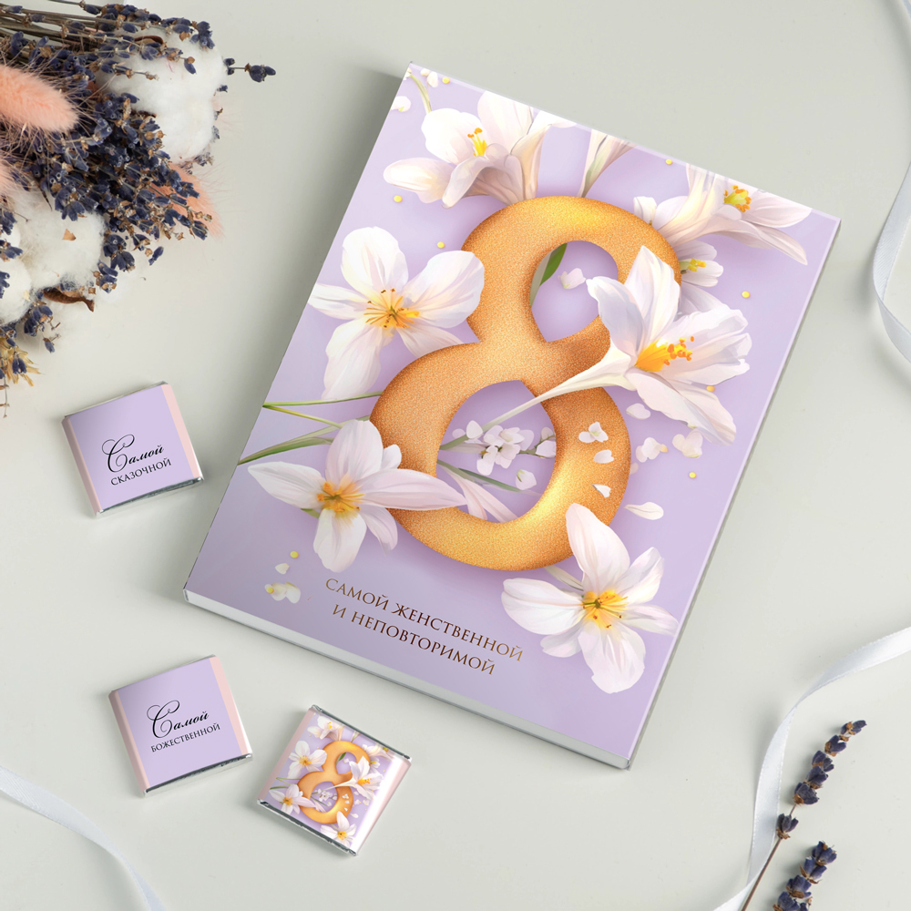 Набор 12 шоколадок "8 марта (сиреневый с золотой цифрой)"