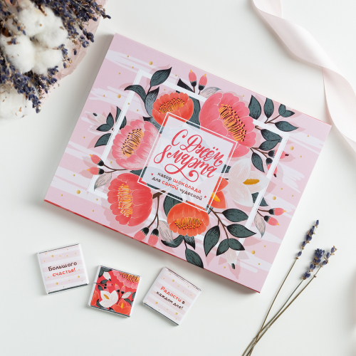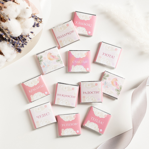 Набор 12 шоколадок "С праздником 8 марта (розовый с бежевым)"