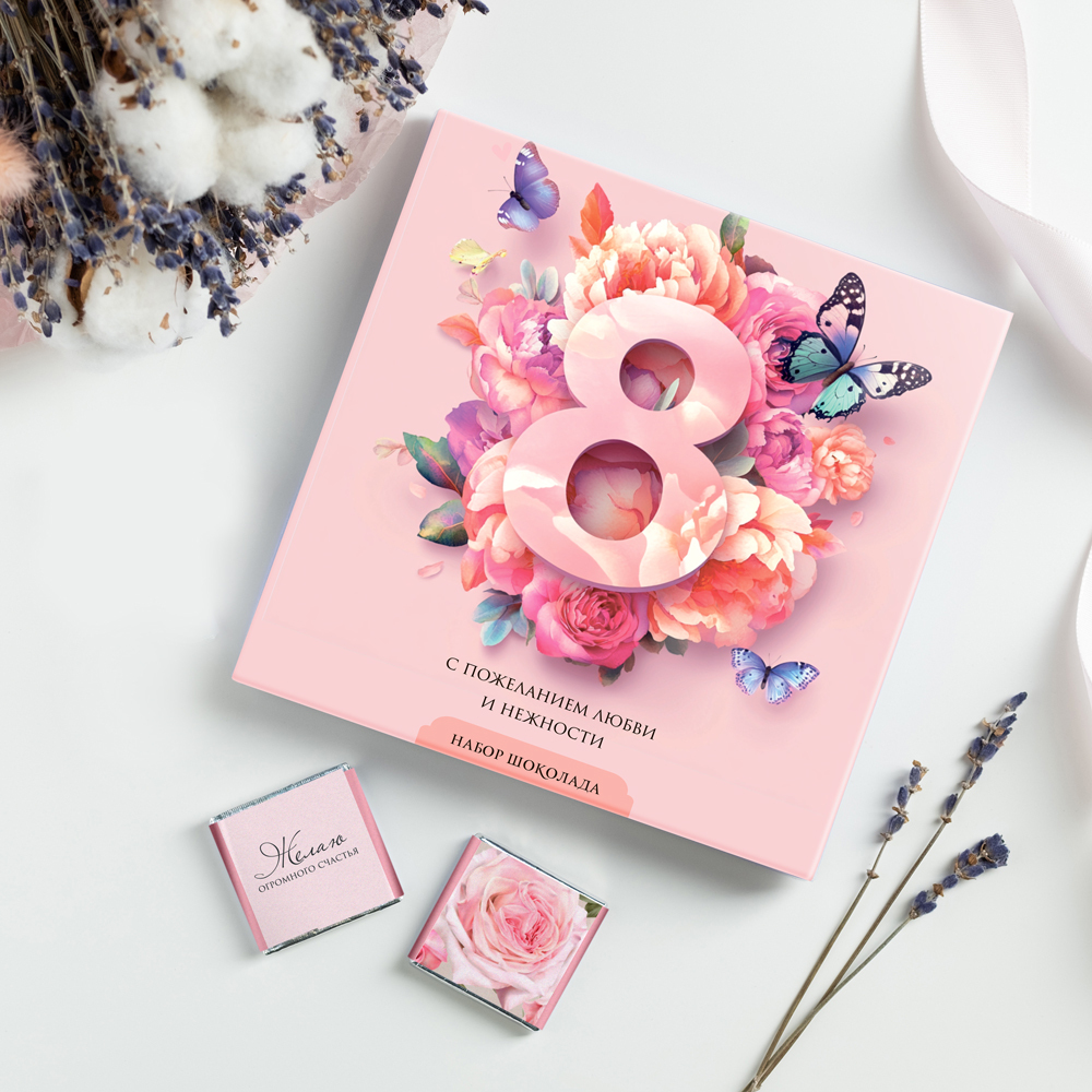 Набор 9 шоколадок "8 марта (цветы и бабочки розовый)"