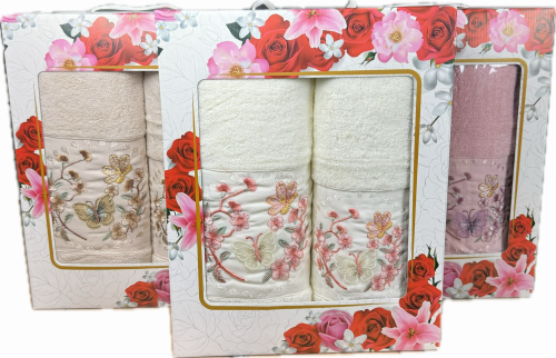 Набор махровых полотенец БУКЕТ С КИСТОЧКОЙ 2 пр р-р 70х140 и 50х90