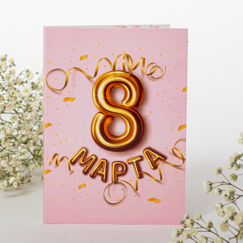 Открытка 4 шоколадки "8 марта (розовая с голубыми веточками)"