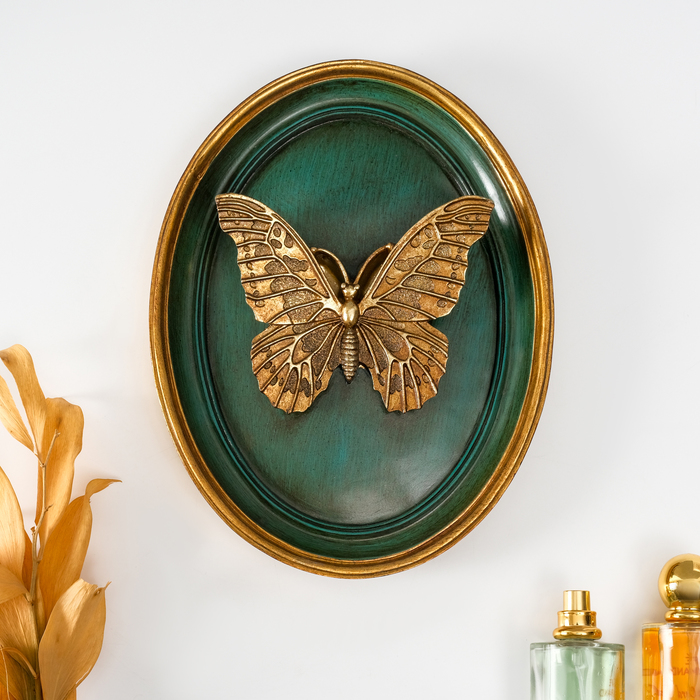 Панно настенное «Бабочка», полистоун, декор, тёмно-зелёный, 20×4×26 см