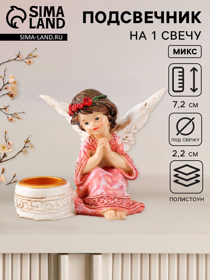 Подсвечник на 1 свечу «Ангел в платье с венком», полистоун, d=2.2 см, 7.2×8.7×5.5 см, МИКС
