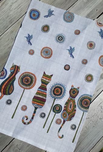 Полотенце 45*75 см. "Кошки" рогожка хлопок 100%