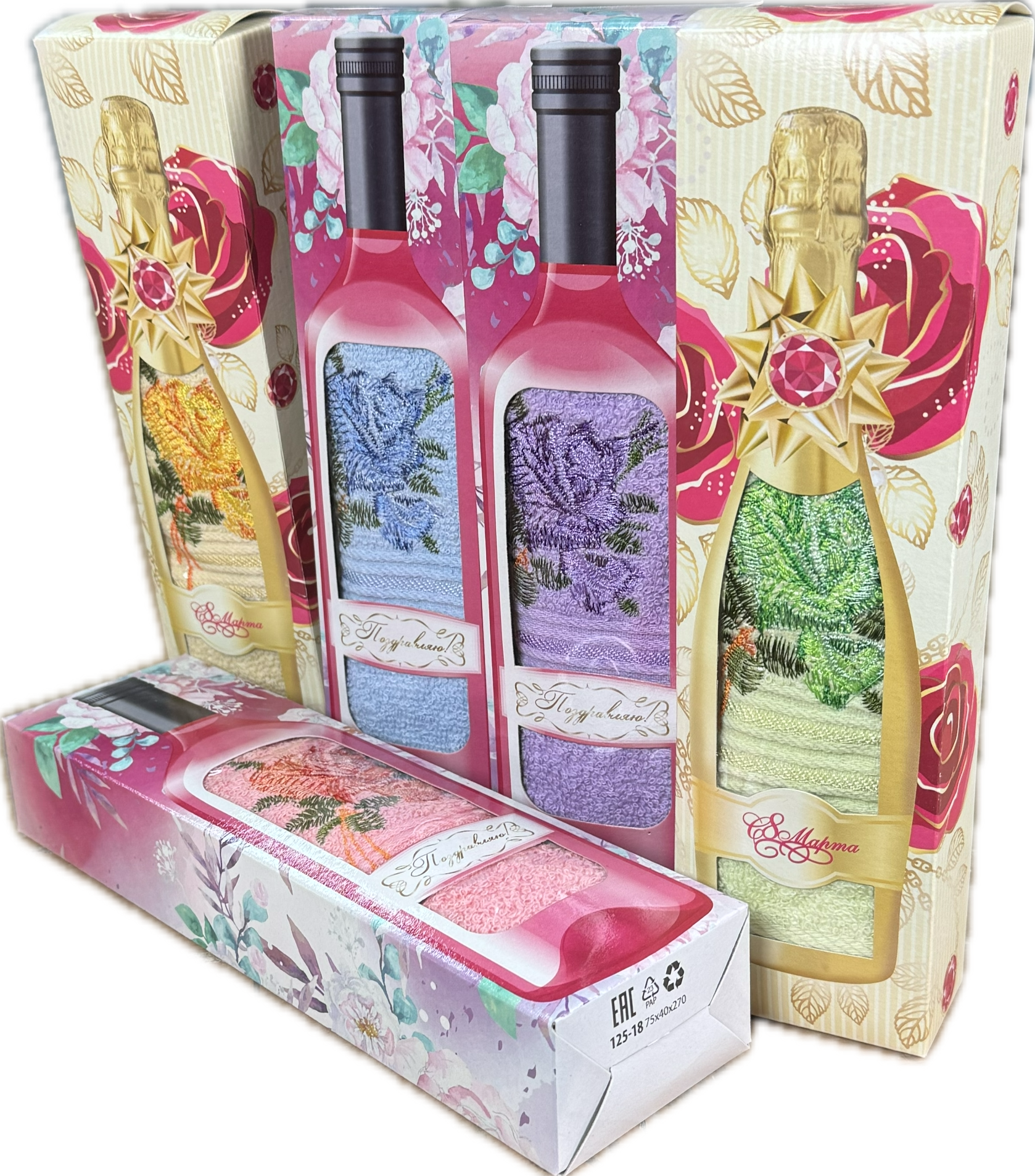 Полотенце махровое в подарочной коробке РОЗА БУТЫЛОЧКА 1 пр р-р 35х70