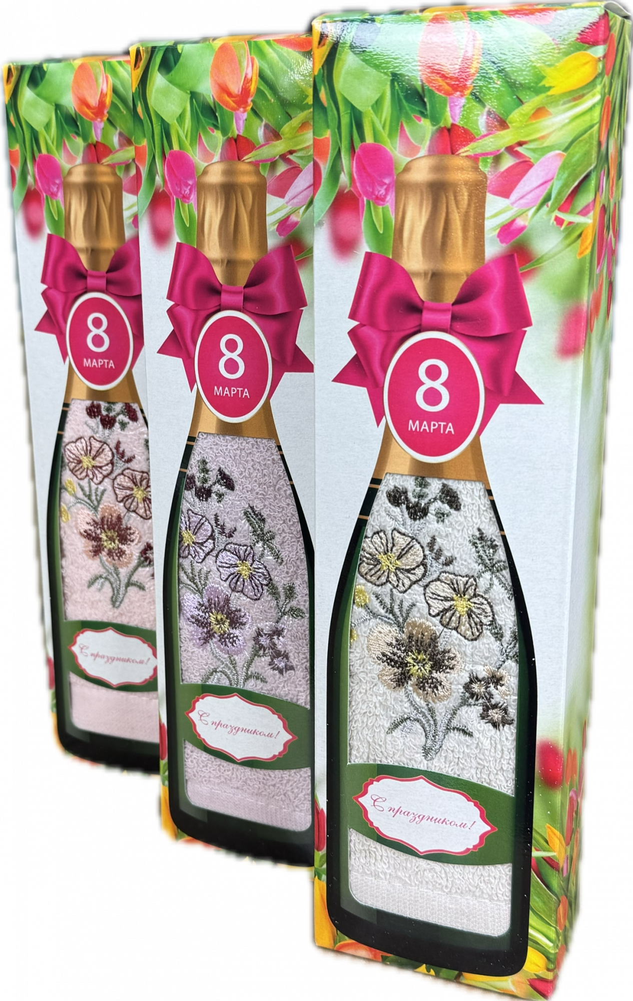 Полотенце махровое в подарочной коробке ВИОЛА 8 МАРТА БУТЫЛОЧКА 1 пр р-р 35х75