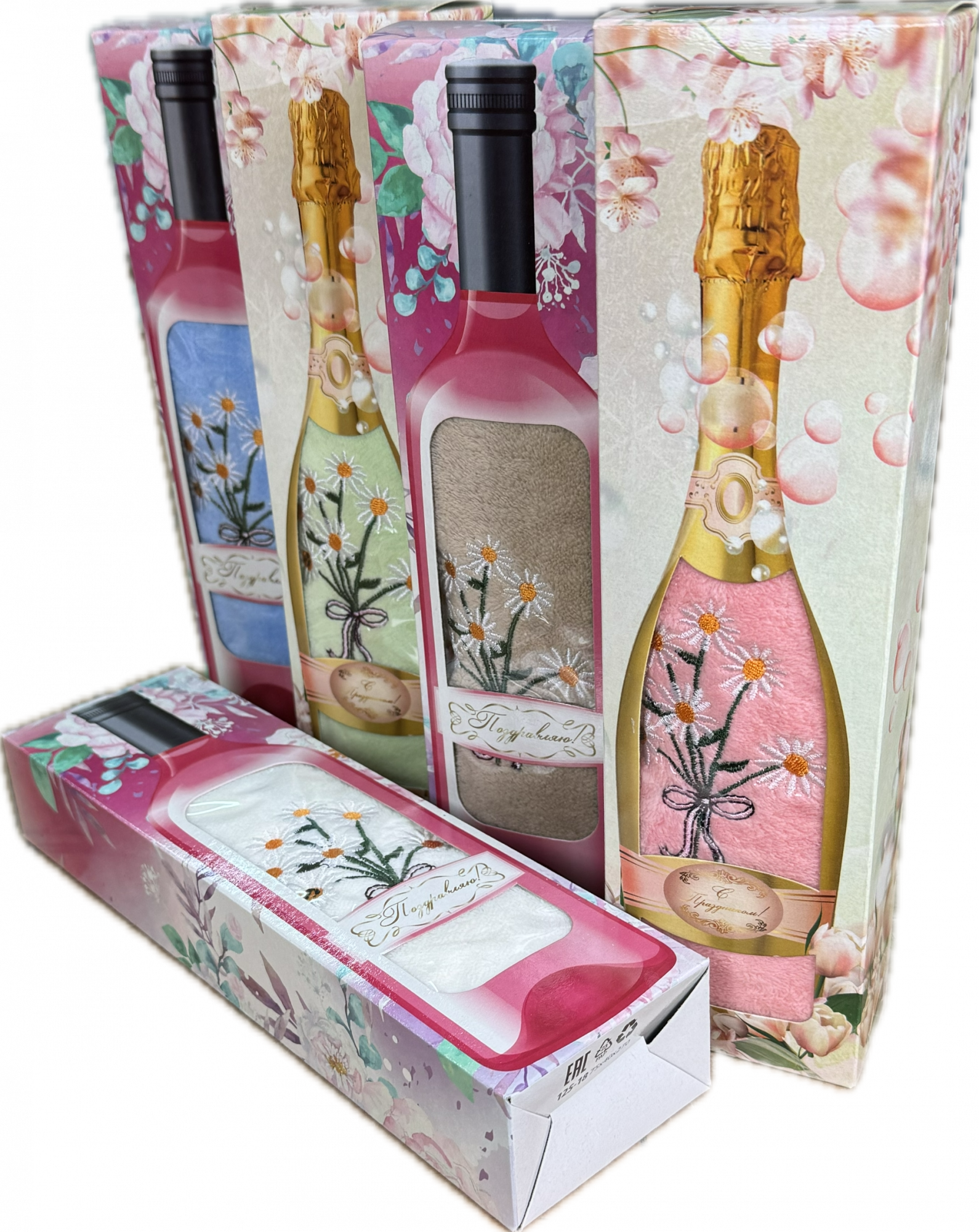 Полотенце микрофибра в подарочной коробке БУКЕТ РОМАШЕК БУТЫЛОЧКА 1 пр р- р 35х75