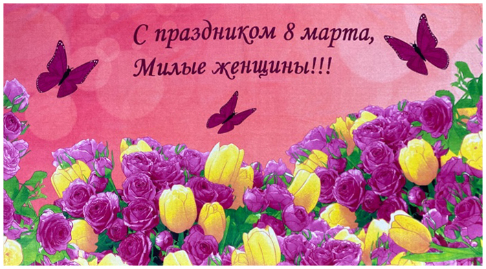 Полотенце пляжное С ПРАЗДНИКОМ 8 МАРТА , МИЛЫЕ ЖЕНЩИНЫ - бабочки р-р 70х140