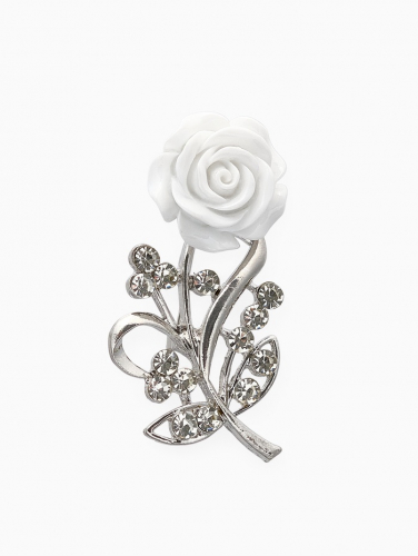 Брошь «Цветок», роза нежная, цвет белый в серебре
