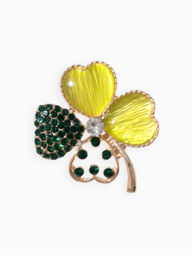 Дизайн, вдохновлённый природой, воплощён в форме клевера — символа удачи и гармонии. Украшение украшено искусственными камнями и стразами, что придаёт ему живость и сияние, делая образ ярким и запоминающимся.