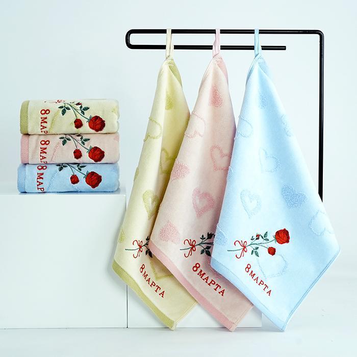 Салфетка велюр / махра РОЗА ВЫШИВКА 8 МАРТА р-р 35х34