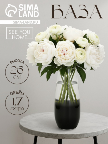 Ваза имеет высоту 26 см и вместимость 1,7 л, что позволяет использовать ее для букетов разного размера.