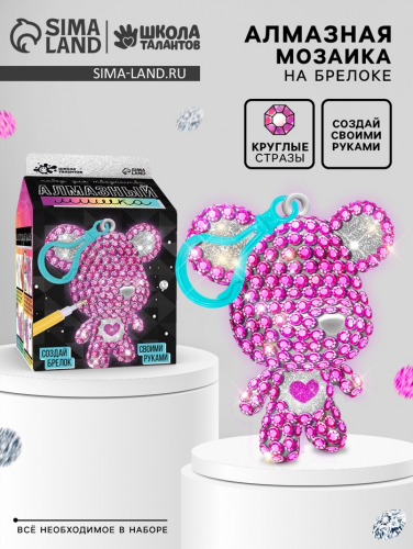Алмазная мозаика на фигурке «Создай брелок. Алмазный мишка», розовый