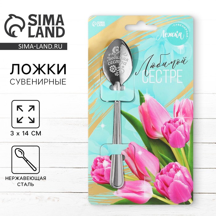 Ложка чайная с гравировкой «Любимой сестре», h=14 см