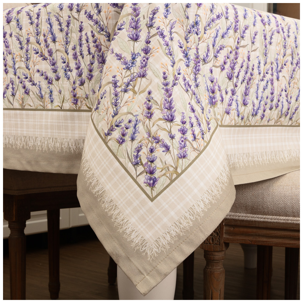 Скатерть от LEFARD, коллекция Душа Прованса — элегантный текстиль с лавандовым узором, вдохновлённый атмосферой южной Франции. Дизайн в стиле прованс придаёт интерьеру тепло, лёгкость и эстетичный уют. Прекрасно впишется в интерьер кухни, столовой или загородной веранды.