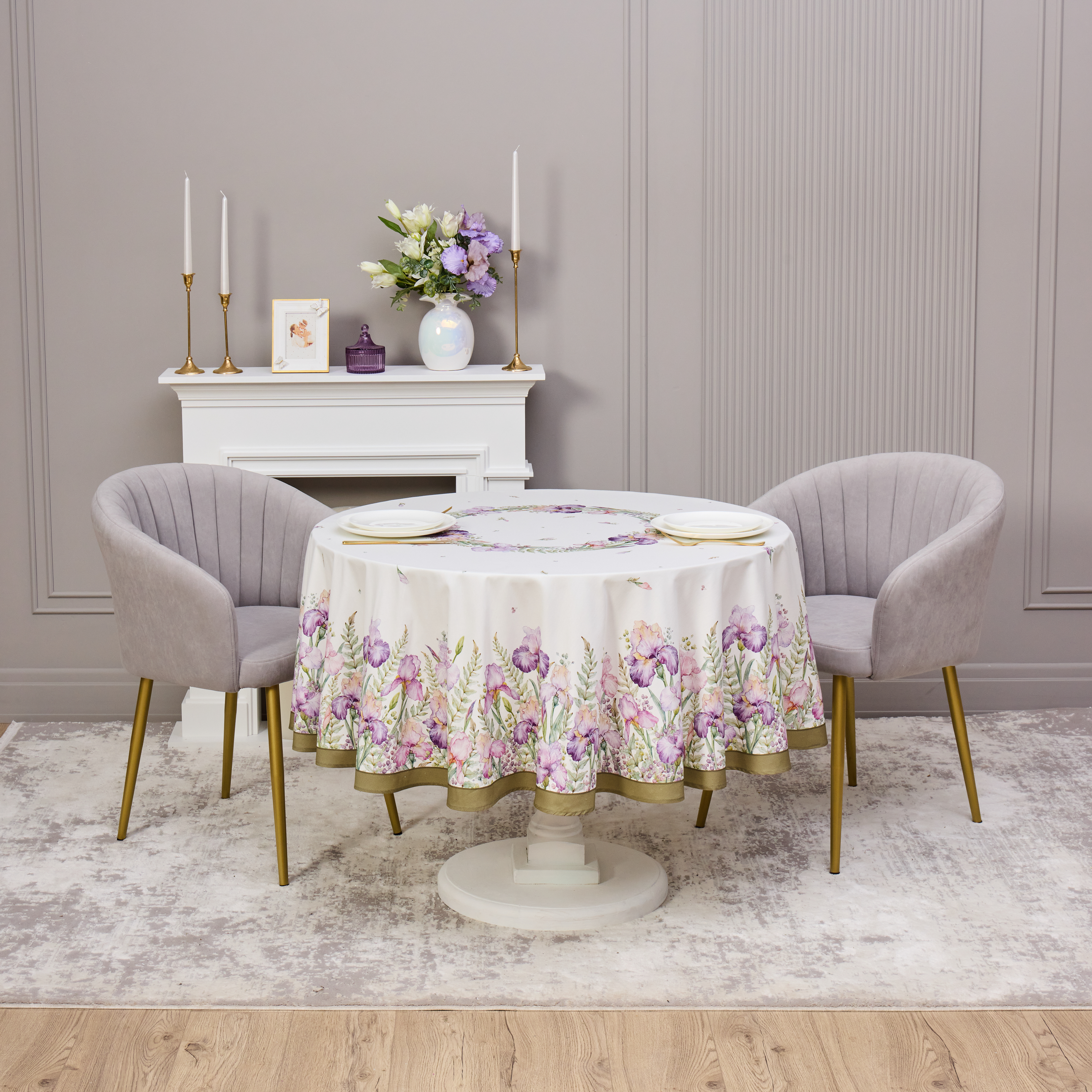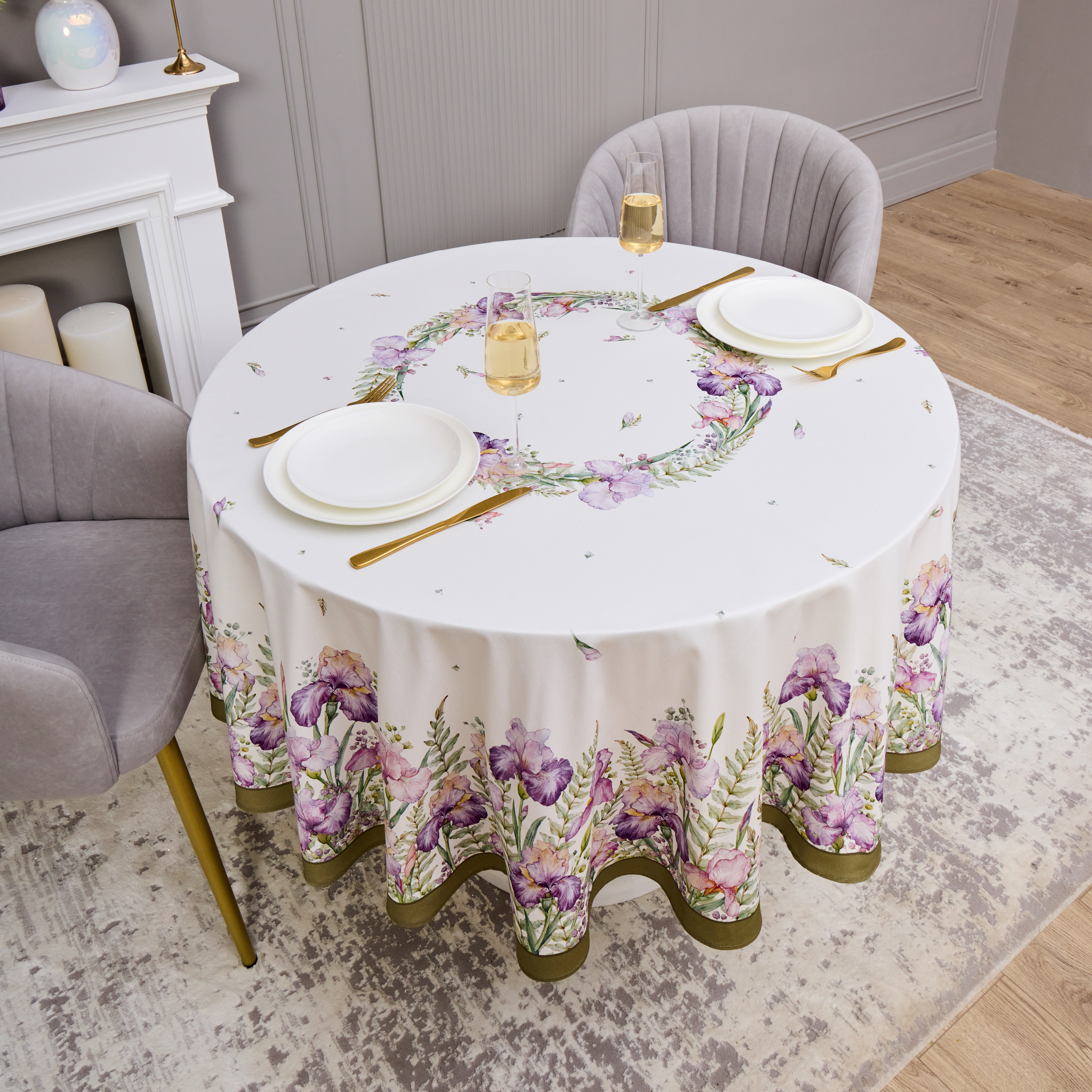 Круглая скатерть 190 см «Ирисы» от Lefard — изящный и практичный акцент для вашего стола. Отлично подходит для круглых столов диаметром 100–120 см, обеспечивая ровный и элегантный свес.