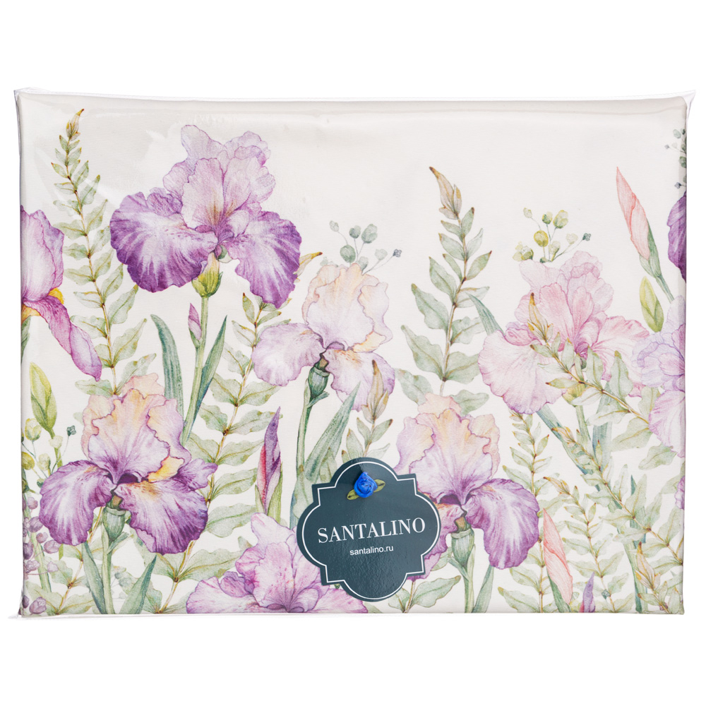 Дизайн украшен цветочным принтом с ирисами и зелёной каймой, выполненный методом цифровой печати — рисунок остаётся ярким и чётким даже после множества стирок. Такая скатерть с принтом создаёт атмосферу уюта, свежести и стиля.