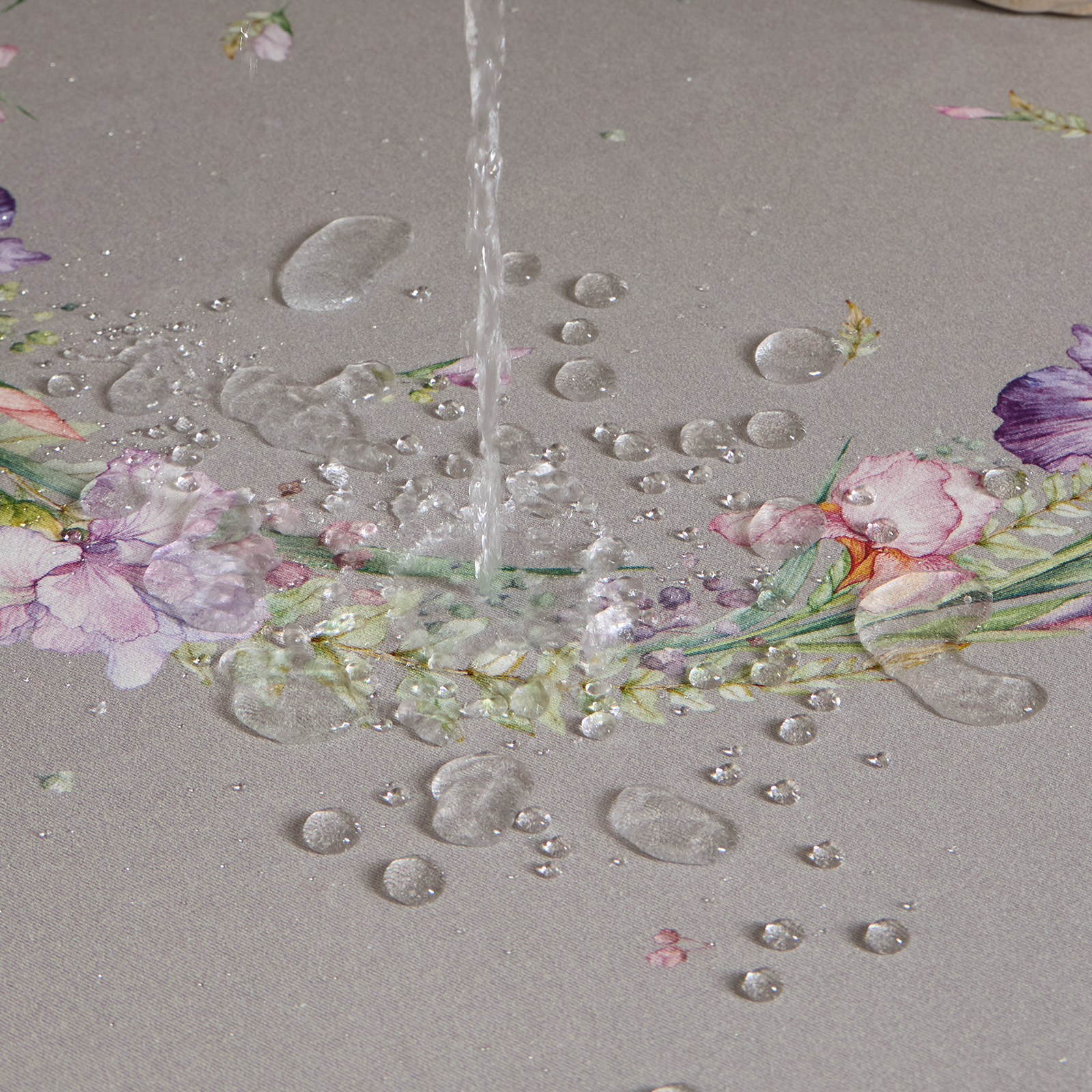 СКАТЕРТЬ КРУГЛАЯ "ИРИСЫ" 190СМ ,СЕРЫЙ, 100% ХЛОПОК, ТВИЛ, С ПРОПИТКОЙ