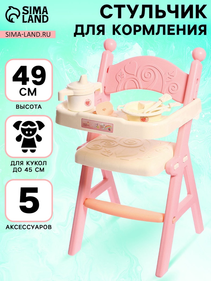 Стульчик для кормления кукол до 45 см «Малыш», 5 аксессуаров