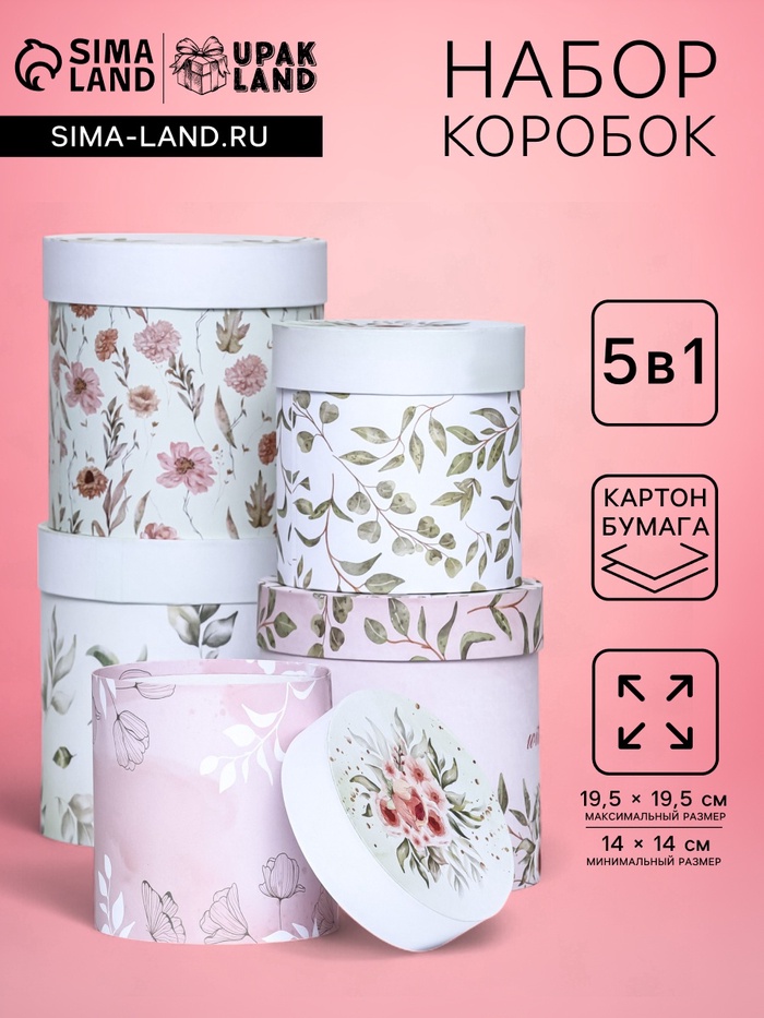 Вид: Наборы коробок, Жёсткие (крышка+дно), Круглые, Коробки-тубусы, Фигурные
