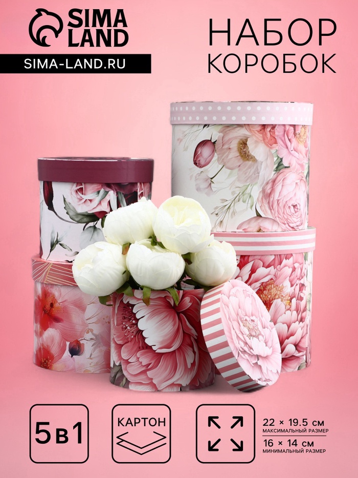 Не упустите возможность подарить радость своим близким — заказывайте набор шляпных коробок для цветов 5 в 1 и создавайте незабываемые моменты!