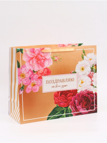 Пакет подарочный горизонтальный «Поздравляю от всей души», 49×40×19 см