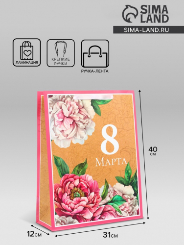 Пакет подарочный ламинированный вертикальный «С 8 Марта», L 31×40×12 см