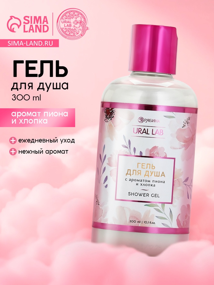 Гель для душа женский, с ароматом пиона и хлопка, 300 мл, URAL LAB