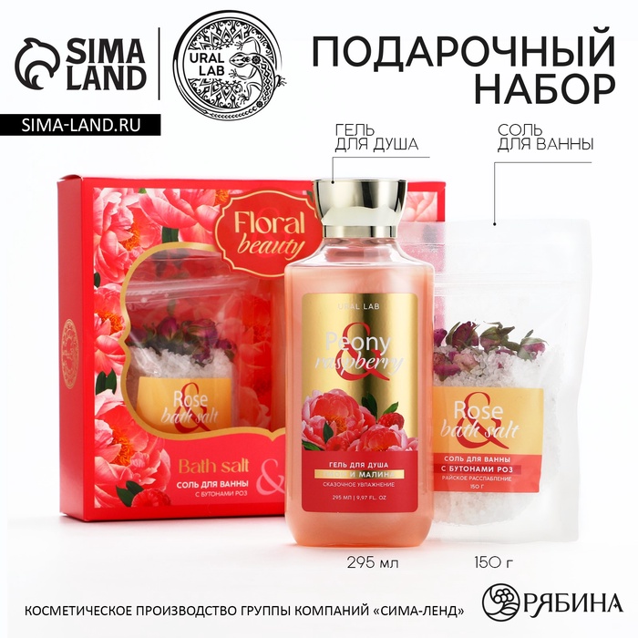 Подарочный набор URAL LAB, гель для душа 295 мл и соль для ванны с бутонами роз 150 г