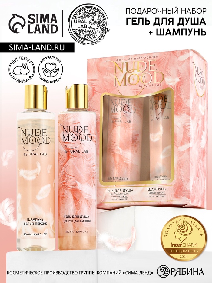Подарочный набор NUDE MOOD, гель для душа и шампунь для волос, 2×250 мл, аромат персика и вишни, URAL LAB