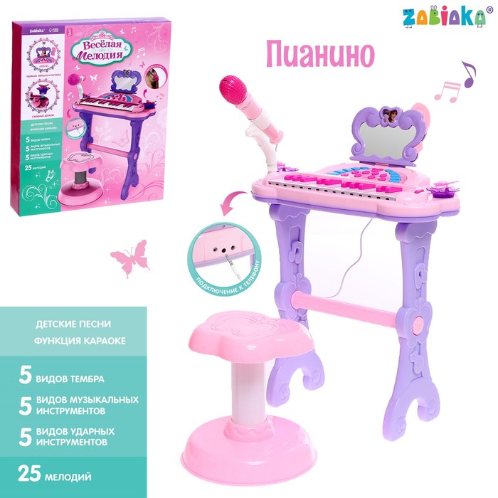 Пианино «Мечта девочки», со стульчиком, зеркалом, микрофоном