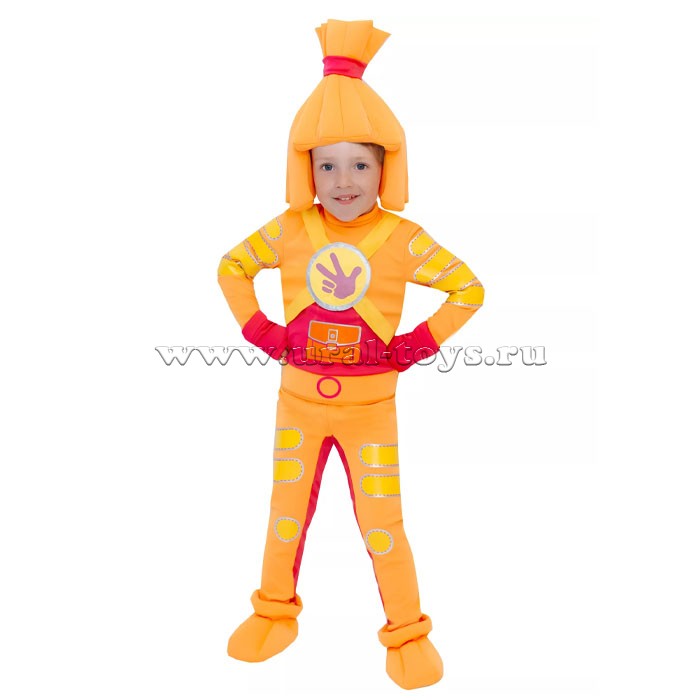 Карнавальный костюм Симки из семейства знаменитых Фиксиков понравится любой девочке, симпатизирующей этому мультсериалу. Симка является главной героиней мультика, отличается умом и решительным характером. Костюм Симки выполнен в ярко-оранжевой расцветке. В комплект входит рубашка, брюки, ботинки и шапка. • Особенности: - Рубашка ярко-оранжевая со значками спереди. - Рукава заканчиваются красными перчатками без пальцев. - Брюки облегающие на резинке. - Ботинки мягкие объемные. - Головной убор в виде прически Симки. • Материал: полиэстер 100%. • Размер: 30. • Рост: 116 см. • Соответствует требованиям безопасности и стандартам качества продукции. • Возраст: 6 лет.