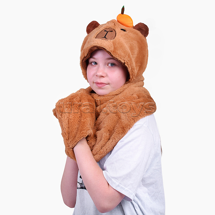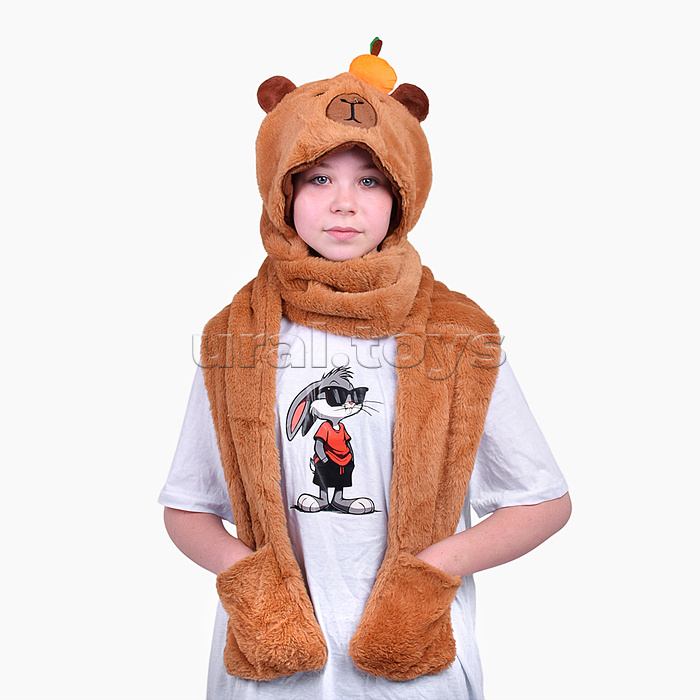 Шапка карнавальная "Капибара" с апельсинкой 43*40 см.