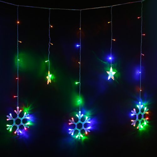 Светодиодная Бахрома ПОЛУМЕСЯЦ. В наличии разноцветные, холодный белый, теплый белый, синий цвет. Размер длина 3 метра, высота нитей 0,9 и 0,5 метра  цвет проводов: прозрачный силиконовый Количество нитей 10 штук,  максимально возможное расстояние между нитями 30см (при необходимости можно сократить) Размер ПОЛУМЕСЯЦ 20 см, звездочки 10 см Количество светодиодов  115 штук Контроллер для переключения режимов НЕТ, работает от сети 220В Возможность подключения в ряд: ДА( в начале вилка, в конце розетка) Разноцветный;   Синий;   Теплый белый;   Холодный белый