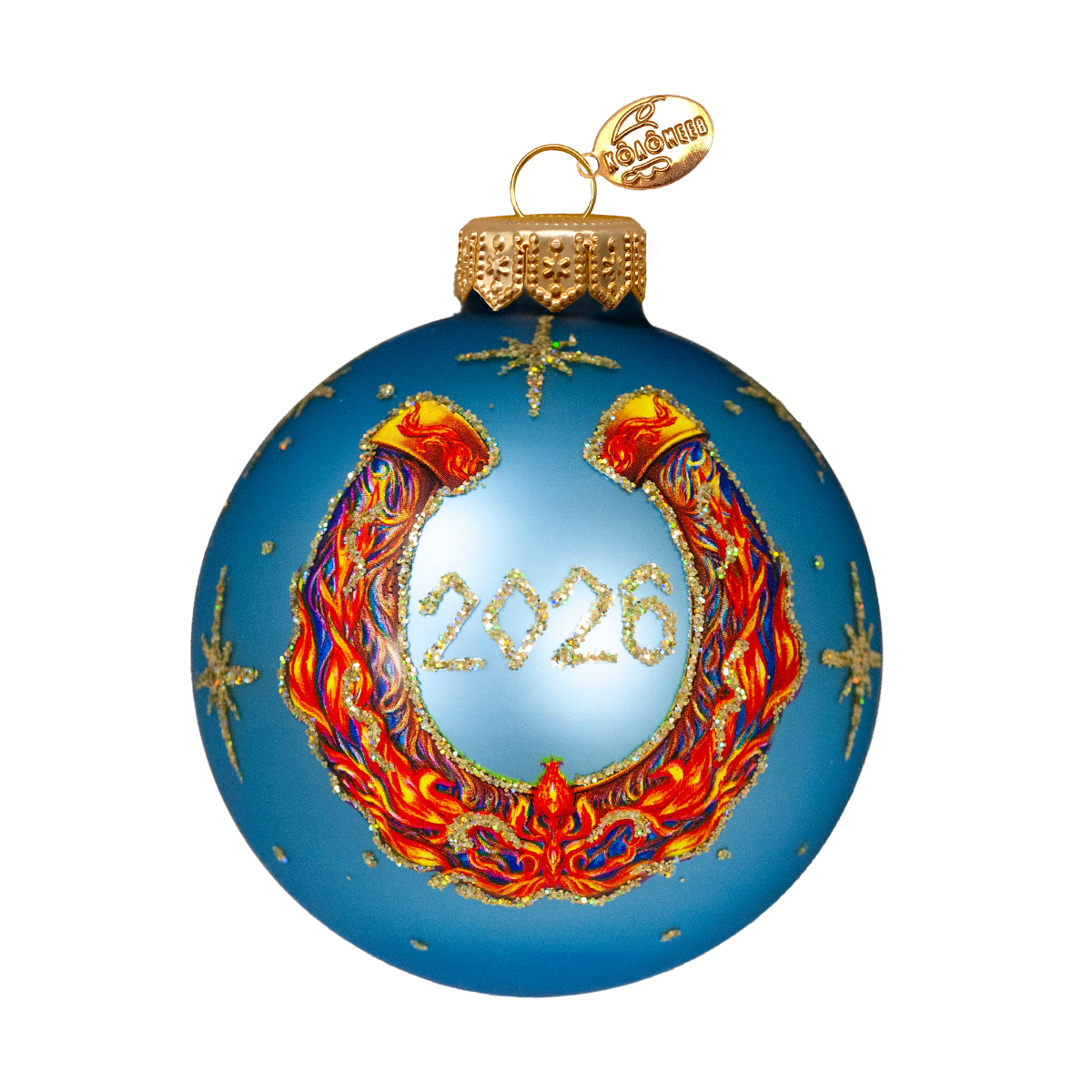1_шт в наличии_Шар "Подкова огненная" (Символ года), 80 мм., в подарочной упаковке