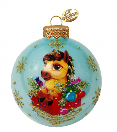 2_шт в наличии_Шар "Лошадка красивая"(Символ года), 100 мм., в подарочной упаковке