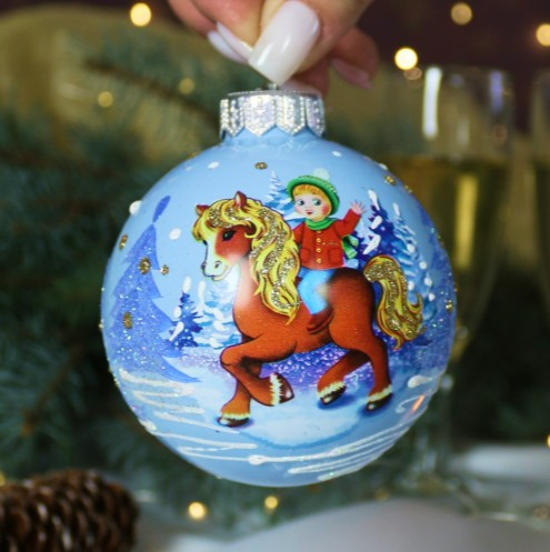 3_шт в наличии_Шар "Лошадка детская"(Символ года), 65 мм., в подарочной упаковке