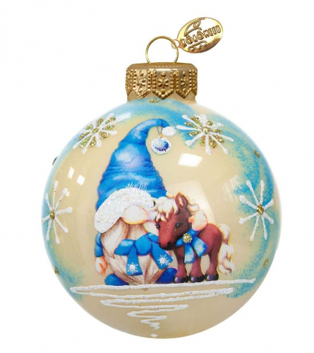 3_шт в наличии_Шар "Лошадка с гномиком 1"(Символ года), 80 мм., в подарочной упаковке